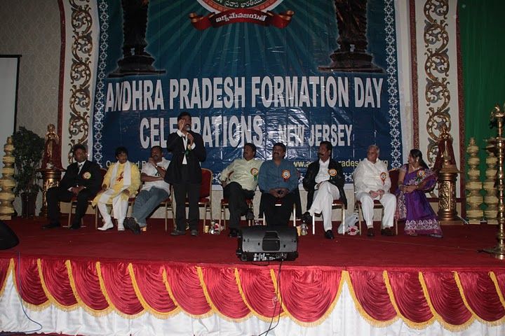 AP Formation Day Celebrations on Nov 21st at Royal Albert Palace, NJ. Lagadapati Rajgopal, Payyavula Keshav, Teegala Krishna Reddy, Ganta Srinivas Rao, Srikanth Reddy, Audusumilli Jayaprakash and Ghazal Srinivas were on the stage.