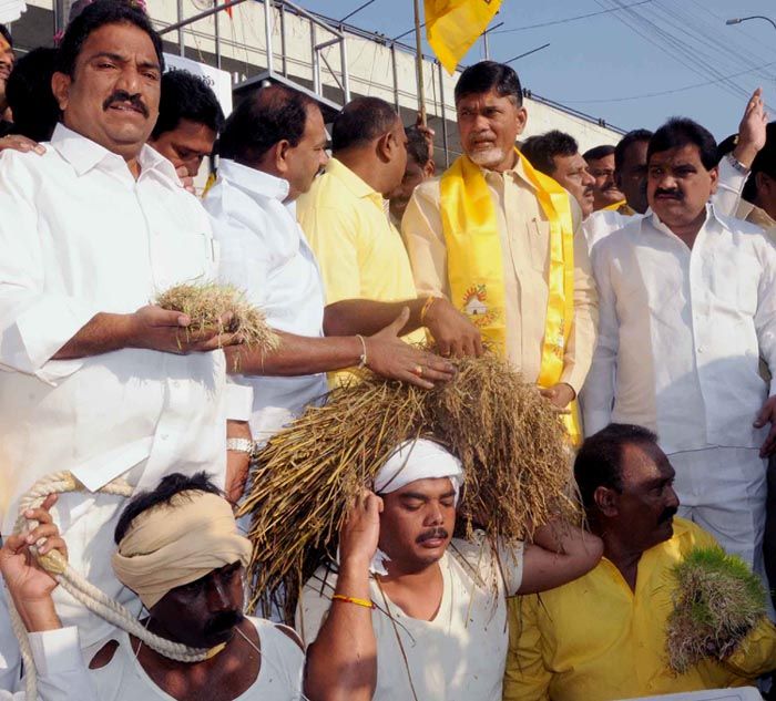 TDP president N Chandrababu Naidu, along with Left parties leaders staged a rasta roko in front of the Assembly in Hyderabad on Monday. Later police took Naidu and other TDP, Left MLA's into their custody. They were shifted to Goshamahal PS where the leaders continued their protest. INN Photos