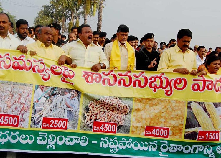 Former chief minister and Telugu Desam Party president N Chandrababu Naidu leads a 'Padayatra' to highlight the problems faced by rain-hit farmers from NTR Ghat to Assembly premises in Hyderabad on Saturday. INN Photos