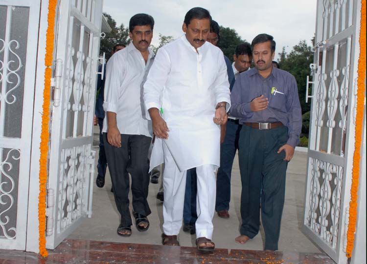 Chief Minister N Kiran Kumar Reddy set his best foot forward to enter into renovated CM camp office-cum-residence at Begumpet on Friday morning. Earlier he performed formal 'gruhapravesa puja' with his family members. Ministers met KKR at his camp office conveyed their wishes to him.