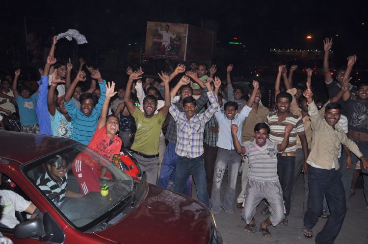 Hyderabad city erupts in joy. Scenes of dancing and singing and bursting of firecrackers witnessed all over the city. As the last wicket fell, fans burst firecrackers and came out on the roads dancing and singing. The policemen, who were out on the roads in good numbers, did not seem to mind the celebrations. Boisterous rallies were taken out on important thoroughfares such as Tank Bund, Necklace Road, Punjagutta-Begumpet main road, KBR Park main road, Musheerabad, Dilsukhnagar, Banjara Hills, and Jubilee Hills.