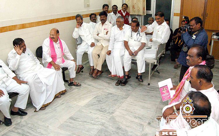 TRS president K. Chandrasekhar Rao ends his 11 day fast by accepting a glasss of lime juice from party leaders and others at the Nizam's Institute of Medical Science on Thursday.