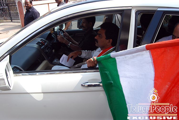 Police arrest Lagadapati Rajagopal, wearing black jacket, a ruling party lawmaker from Vijayawada who was preparing to begin a high-profile hunger strike to protest the splitting of the state, in Hyderabad, India, Monday, Dec. 14, 2009. Most trains and buses started running again Monday and businesses and schools reopened in Andhra Pradesh state following three days of violent protests against the government's plan to split up the southern Indian state. The lawmaker was freed hours later.