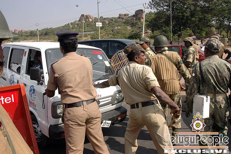 Police arrest Lagadapati Rajagopal, wearing black jacket, a ruling party lawmaker from Vijayawada who was preparing to begin a high-profile hunger strike to protest the splitting of the state, in Hyderabad, India, Monday, Dec. 14, 2009. Most trains and buses started running again Monday and businesses and schools reopened in Andhra Pradesh state following three days of violent protests against the government's plan to split up the southern Indian state. The lawmaker was freed hours later.