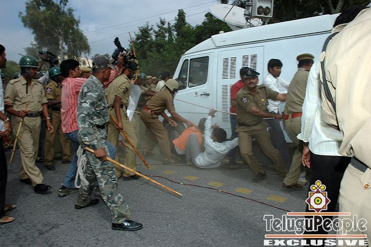 Tension gripped Sri Krishnadevaraya University (SKU) at Anantapur today after police cane charged students, who were protesting the bifurcation of Andhra Pradesh.The trouble began when police prevented the students from taking out a 'peace rally' in the varsity campus as the demonstration did not have a permission.Police baton charged students to control and quell violence after some of them pelted stones at the cops.