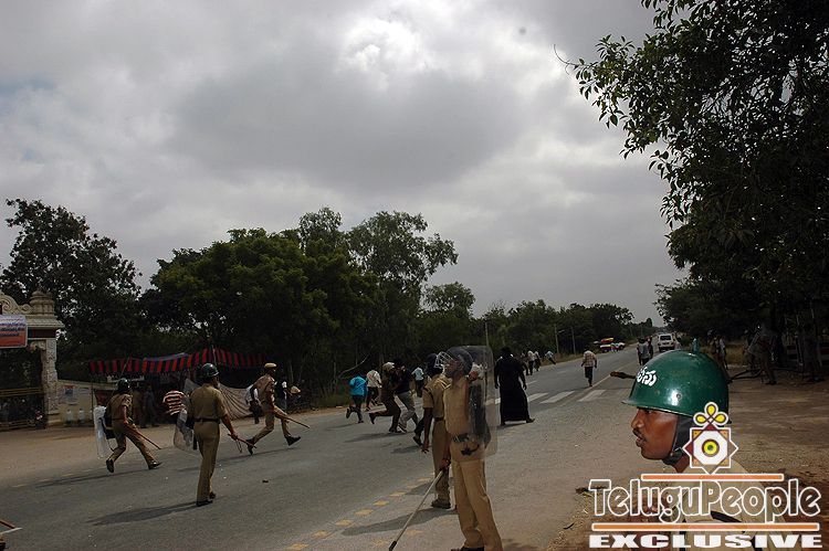 Tension gripped Sri Krishnadevaraya University (SKU) at Anantapur today after police cane charged students, who were protesting the bifurcation of Andhra Pradesh.The trouble began when police prevented the students from taking out a 'peace rally' in the varsity campus as the demonstration did not have a permission.Police baton charged students to control and quell violence after some of them pelted stones at the cops.