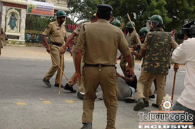Tension gripped Sri Krishnadevaraya University (SKU) at Anantapur today after police cane charged students, who were protesting the bifurcation of Andhra Pradesh.The trouble began when police prevented the students from taking out a 'peace rally' in the varsity campus as the demonstration did not have a permission.Police baton charged students to control and quell violence after some of them pelted stones at the cops.