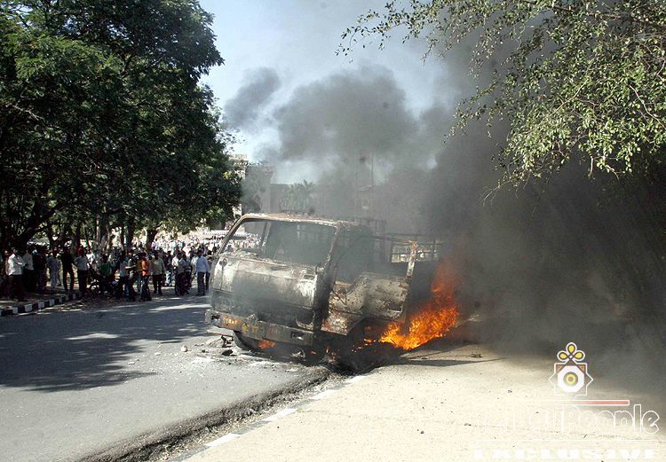 The Osmania University campus here turned into a battlefield, with students repeatedly clashing with police on Wednesday. Violence erupted after they were prevented from marching to the Gun Park in a procession with the body of a student, who allegedly immolated himself over the delay in carving out a Telangana state. Police fired rubber bullets after caning and lobbing of tear gas shells proved ineffective to quell the stone-pelting mobs. Six students were injured in the firing.