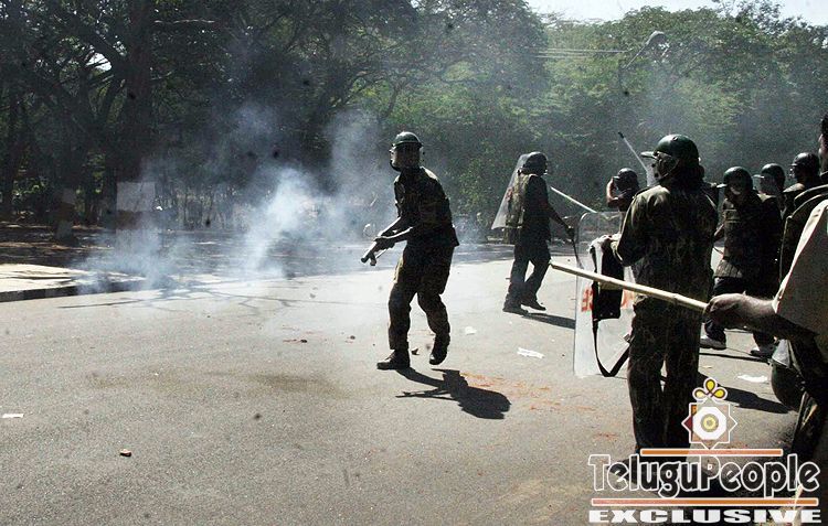 The Osmania University campus here turned into a battlefield, with students repeatedly clashing with police on Wednesday. Violence erupted after they were prevented from marching to the Gun Park in a procession with the body of a student, who allegedly immolated himself over the delay in carving out a Telangana state. Police fired rubber bullets after caning and lobbing of tear gas shells proved ineffective to quell the stone-pelting mobs. Six students were injured in the firing.