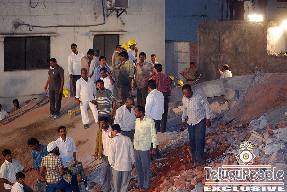 Rescue workers cleared the rubble with bare hands after a three-storied building under construction collapsed in the busy Narayanguda locality on Friday afternoon. Ten persons were confirmed killed, while there is no clarity on the number of workers trapped underneath the debris. Panic spread in the busy locality after the building adjacent to Brilliant Grammar School collapsed around 2.30 p.m. Students from the building were evacuated immediately even as worried parents rushed to the school.Hundreds of civilians were assisting the police, fire services department in clearing the debris, even as bull dozers, poclains and gas cutting equipment were being moved to the site. The collapsed building is on the busy Barkatpura-Himayatnagar stretch and with thousands of curious people rushing there, it was becoming difficult for the police to move the cranes and other equipment to the site.