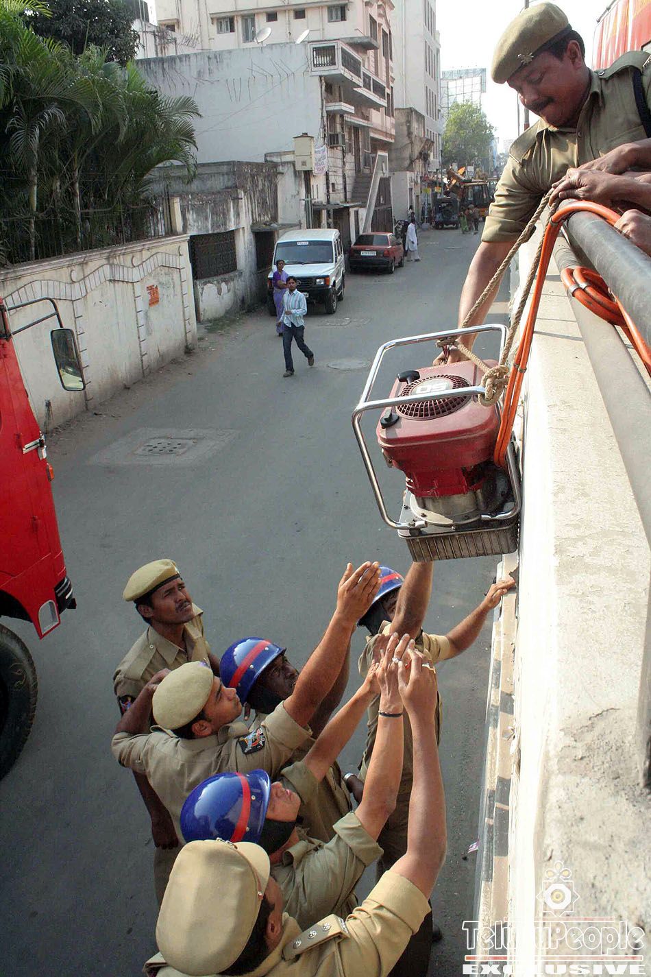 Rescue workers cleared the rubble with bare hands after a three-storied building under construction collapsed in the busy Narayanguda locality on Friday afternoon. Ten persons were confirmed killed, while there is no clarity on the number of workers trapped underneath the debris. Panic spread in the busy locality after the building adjacent to Brilliant Grammar School collapsed around 2.30 p.m. Students from the building were evacuated immediately even as worried parents rushed to the school.Hundreds of civilians were assisting the police, fire services department in clearing the debris, even as bull dozers, poclains and gas cutting equipment were being moved to the site. The collapsed building is on the busy Barkatpura-Himayatnagar stretch and with thousands of curious people rushing there, it was becoming difficult for the police to move the cranes and other equipment to the site.