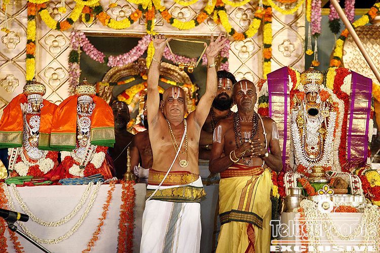 The archakas who perform pujas at Srivari Temple at Tirumala are the officiating priests for Srivari Kalyanam. The Festival is conducted as per the Hindu custom of marriage with homam, samprokshana and pravara (recitation of the line of ancestors of the Lord and Goddess). 'Srivari Kalyanam' is a unique opportunity for devotees to participate in a solemn ritual without any distinction of caste or creed. Witnessing 'Srinivasa Kalyanam' is a thrilling experience, ensuring the participants peace and happiness.