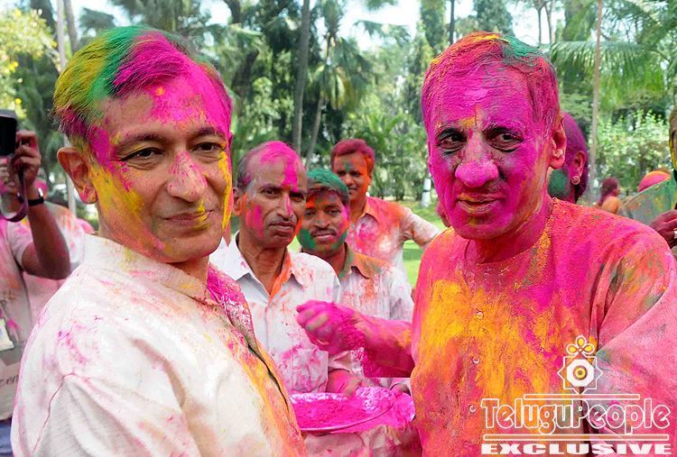 Governor E. S. L. Narasimhan celebrated Holi in the Raj Bhavan and CPI State Secretary K. Narayana, city police commissioner A. K. Khan and several other officials were present on the occasion.Mr. Narasimhan wished that Andhra Pradesh emerged as the number one state in the country in terms of development.Chief Minister K. Rosaiah’s residence also wore a festival look as he played Holi with a group of tribals and others. Health Minister D. Nagender, who hails from Hyderabad, also celebrated the festival at the Chief Minister’s residence.Shedding his serious appearance, Telugu Desam Chief N. Chandrababu Naidu beat a drum and joined a group of tribals in dance.