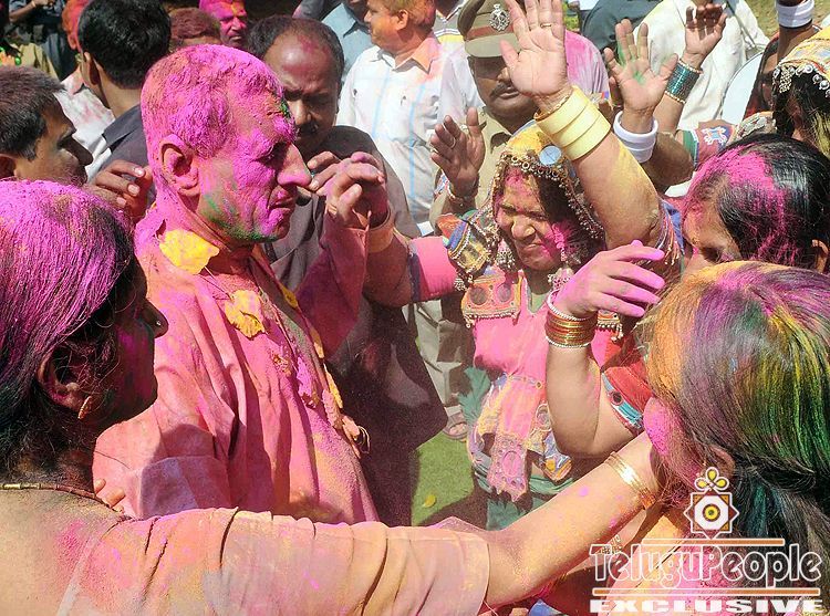 Governor E. S. L. Narasimhan celebrated Holi in the Raj Bhavan and CPI State Secretary K. Narayana, city police commissioner A. K. Khan and several other officials were present on the occasion.Mr. Narasimhan wished that Andhra Pradesh emerged as the number one state in the country in terms of development.Chief Minister K. Rosaiah’s residence also wore a festival look as he played Holi with a group of tribals and others. Health Minister D. Nagender, who hails from Hyderabad, also celebrated the festival at the Chief Minister’s residence.Shedding his serious appearance, Telugu Desam Chief N. Chandrababu Naidu beat a drum and joined a group of tribals in dance.