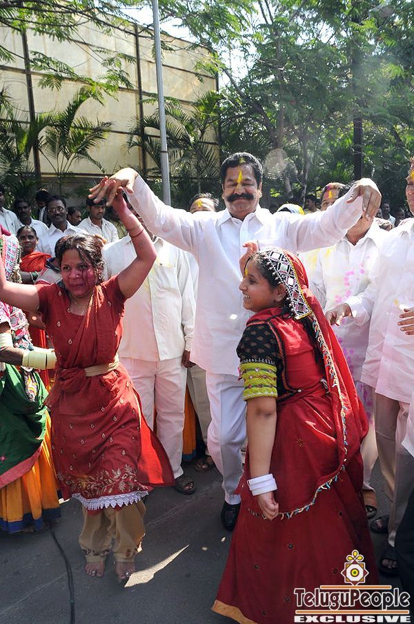 Governor E. S. L. Narasimhan celebrated Holi in the Raj Bhavan and CPI State Secretary K. Narayana, city police commissioner A. K. Khan and several other officials were present on the occasion.Mr. Narasimhan wished that Andhra Pradesh emerged as the number one state in the country in terms of development.Chief Minister K. Rosaiah’s residence also wore a festival look as he played Holi with a group of tribals and others. Health Minister D. Nagender, who hails from Hyderabad, also celebrated the festival at the Chief Minister’s residence.Shedding his serious appearance, Telugu Desam Chief N. Chandrababu Naidu beat a drum and joined a group of tribals in dance.