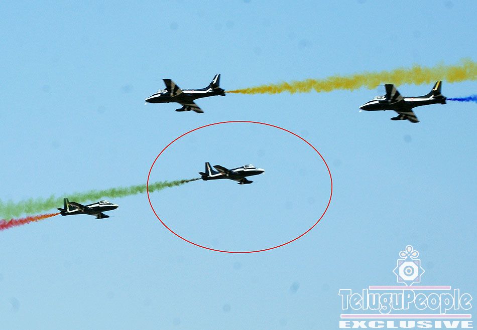 An Indian Navy plane performing aerobatics at an air show crashed into a three-storeyed residential building in a crowded area on Wednesday killing its two pilots and one person on the ground.The Navy has grounded the entire fleet of 20 Kiran trainer aircraft following the crash, a Navy statement said.The Kiran MK II trainer — part of the four-plane ‘Sagar Pawan’ aerobatic team — failed to pull up from a dive, went out of control into a spiral and hit the building as the planes were breaking away from the formation and going in different directions in a tragic start to airshow India Aviation 2010.
