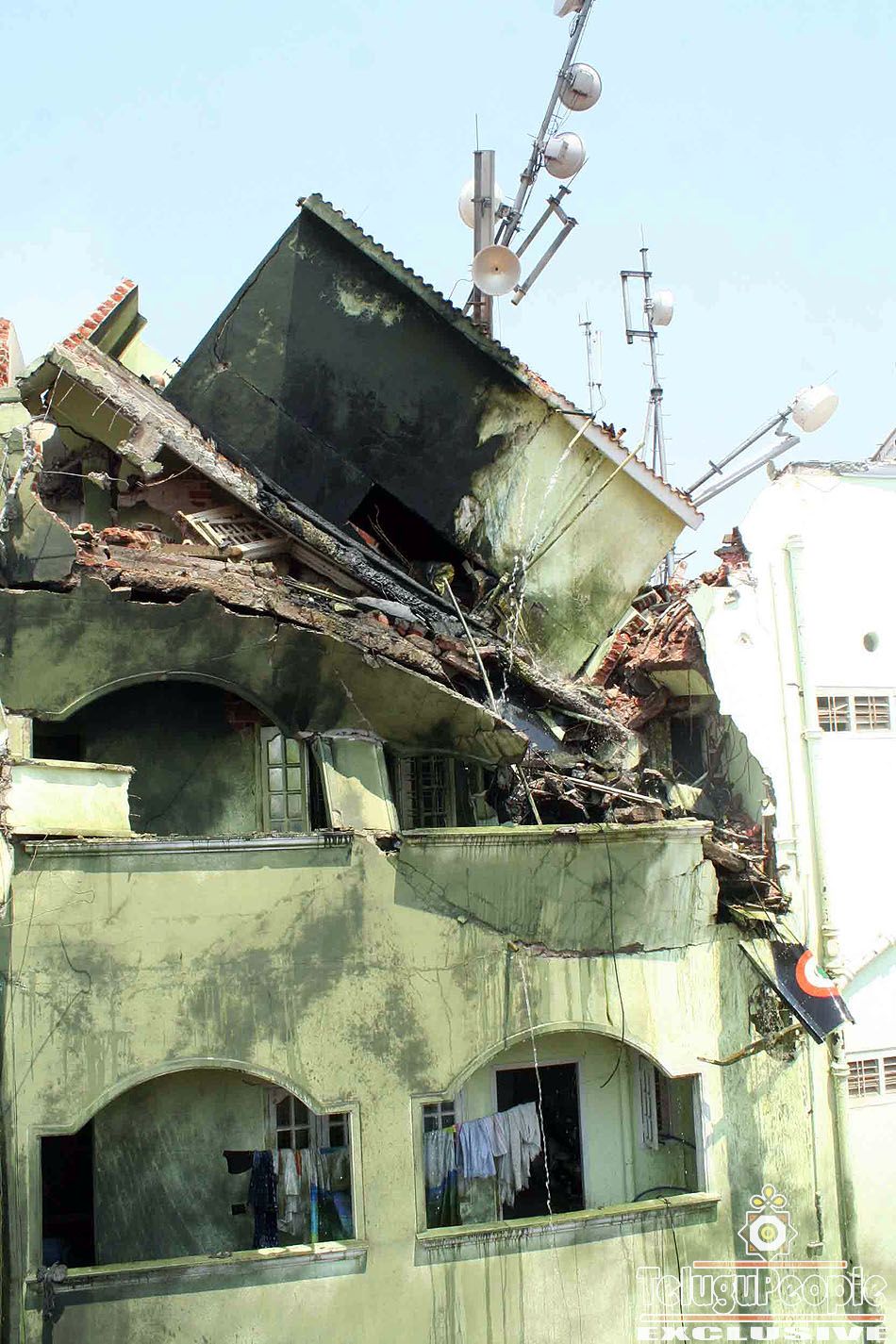 An Indian Navy plane performing aerobatics at an air show crashed into a three-storeyed residential building in a crowded area on Wednesday killing its two pilots and one person on the ground.The Navy has grounded the entire fleet of 20 Kiran trainer aircraft following the crash, a Navy statement said.The Kiran MK II trainer — part of the four-plane ‘Sagar Pawan’ aerobatic team — failed to pull up from a dive, went out of control into a spiral and hit the building as the planes were breaking away from the formation and going in different directions in a tragic start to airshow India Aviation 2010.