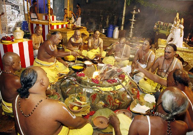 Procession of Raksha Kankanams from Sri Bedi Anjaneya Swamy Temple to Sri Vari Temple by Sri D. K. Audikesavulu, Chairman TTDs, Sri I.Y.R.Krishna Rao, Executive Officer on Aug 20. The TTDs Hindu Dharma Prachara Parishad will conduct Sravana Pournima Srinivasa Kalyanam in all TTD Kalyana Mandapam located in Dist HQ of A.P and Chennai, Bangalore Information Centres on Aug 24.