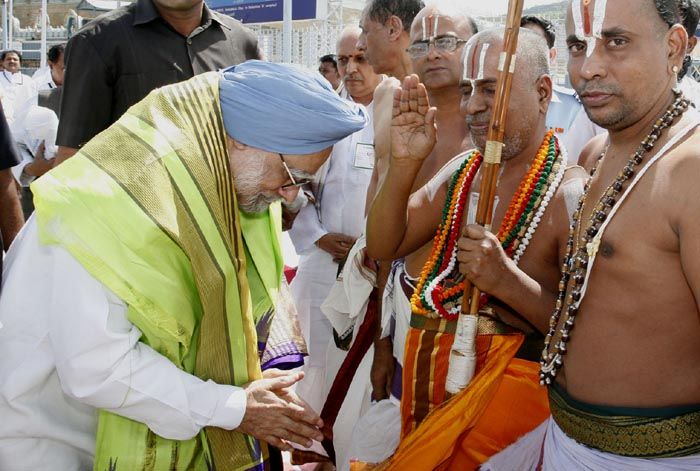 Pedda Jeeyangar of Tirumala presented the Melchat Vastram of the Lord to both the Prime Minister and the Governor Sri. E S L Narasimhan.