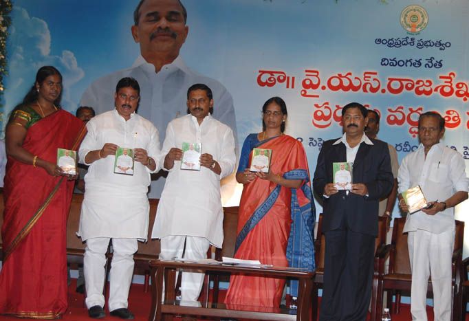 From left: City Mayor Banda Karthika Reddy, Health Minister D Nagender, Speaker of the APLA N Kiran Kumar Reddy, Home Minister P Sabitha Indira Reddy, BC Welfare Minister Mukesh Goud and others pay tributes to former chief minister YS Rajasekhara Reddy on his first death anniversary in Hyderabad on Thursday. INN Photos