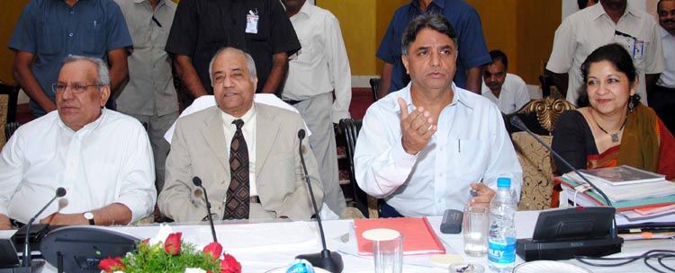 Sri Krishna Committee Chairman Justice Sri Krishna along with Duggal Member secretary and its members addressing Media at jublee hall in Hyderabad