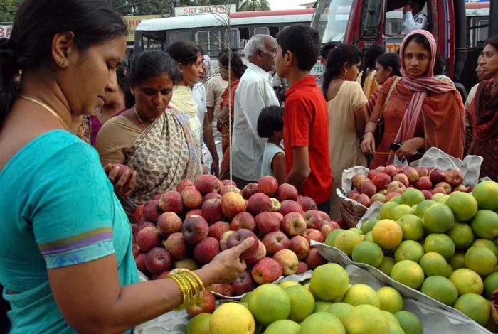 Women throng markets, street corners to buy Ganesh idols, fruits and flowers in preparation of the Ganesh Chaturthi in Hyderabad on Friday. INN Photos