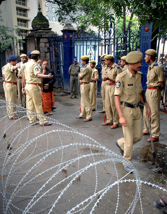 Police take Lawyers and students in custody as they protest at the state High Court on Friday, demanding 42 per cent reservations for Telanganaites in Judiciary posts. Police blocked major roads leading to High Court with barricades and barbed wire fence to prevent agitators entering court premises. INN Photos