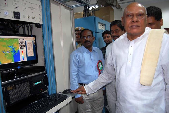Chief Minister K Rosaiah inaugurates the Metstar S-band Doppler Weather Radar system at Begumpet on Saturday. Also seen are Revenue Minister Dharmana Prasad Rao, National Disaster Management Authority member and MLA M Shashidhar Reddy and others. INN Photos