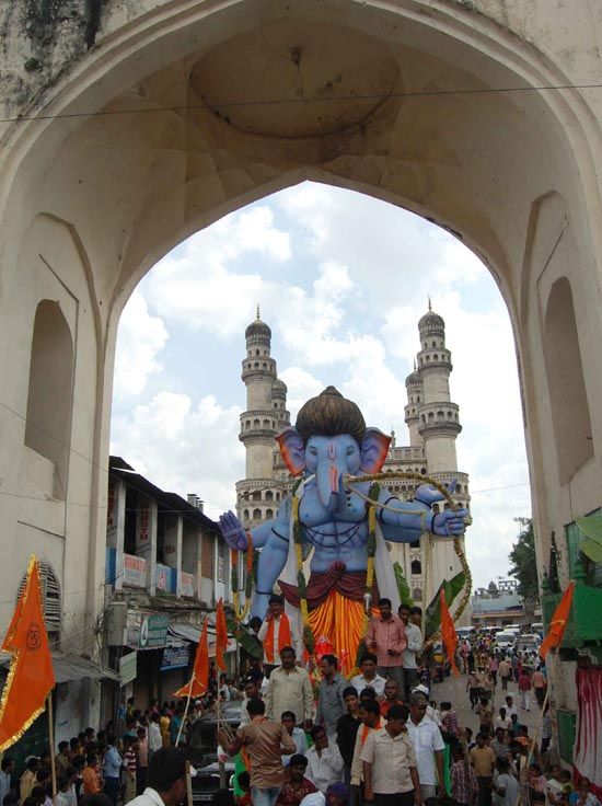 The Ganesh Nimajjanam procession went off peacefully amid tight security. With lakhs of people participated in the procession to bid farewell to lord Ganesha. Police made elaborated bandobust especcially in sensitive areas in Old City of Hyderabad. INN photos