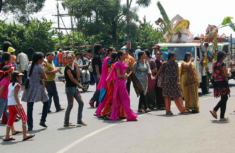 Large number of Families participating during the Lord Ganesh Immersion Procession at Hussain Sagar Lake in Hyderabad on Wednesday. INN photos