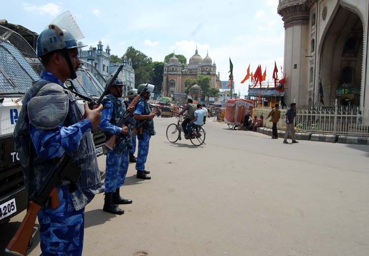 Security intensified in the Old City in the aftermath of the Babri Masjid title suit in Hyderabad on Thursday Police enforce almost an undeclared bandh in twin cities of Hyderabad from Thursday afternoon fearing any untoward incident. INN photos
