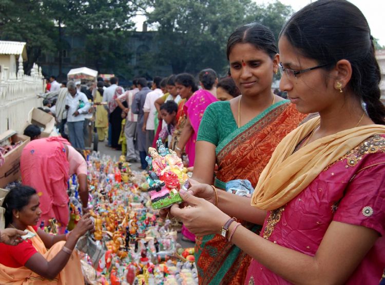 With Dassera around the corner, people buy dolls and ornamental pieces to decorate their homes near Charminar in Hyderabad on Friday. INN Photos