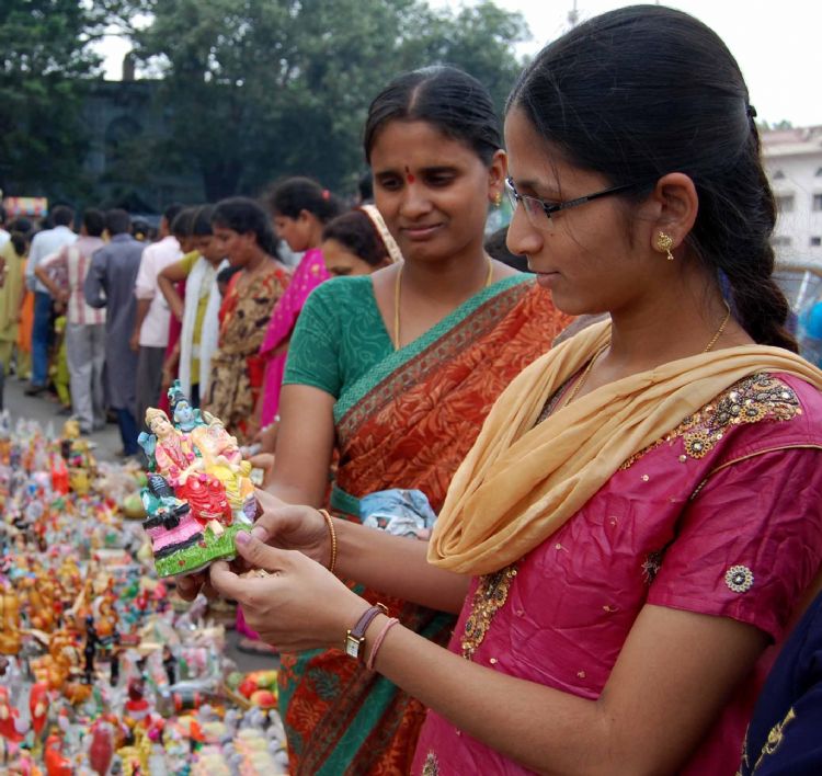 With Dassera around the corner, people buy dolls and ornamental pieces to decorate their homes near Charminar in Hyderabad on Friday. INN Photos