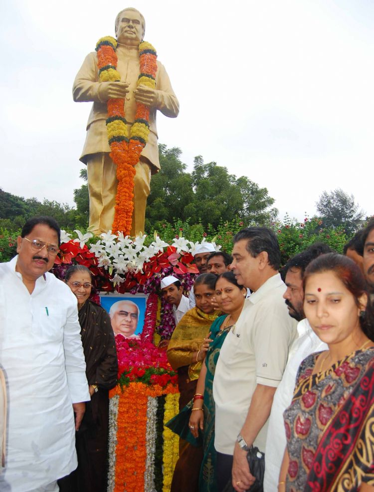APCC President D Srinivas offers floral tributes to former chief minister late T Anjaiah on the occasion of his death anniversary in Hyderabad on Monday. INN Photos
