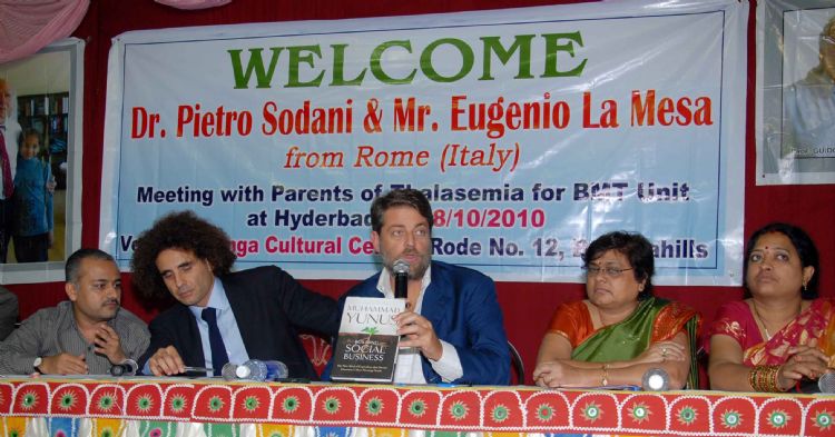 To provide treatment for Thalassemia patients, Mr Eugenio La Mesa addresses media persons on the plan to set up a BMT Unit in the city in Hyderabad on Monday. Dr. Pietro Sodani also seen. INN Photos