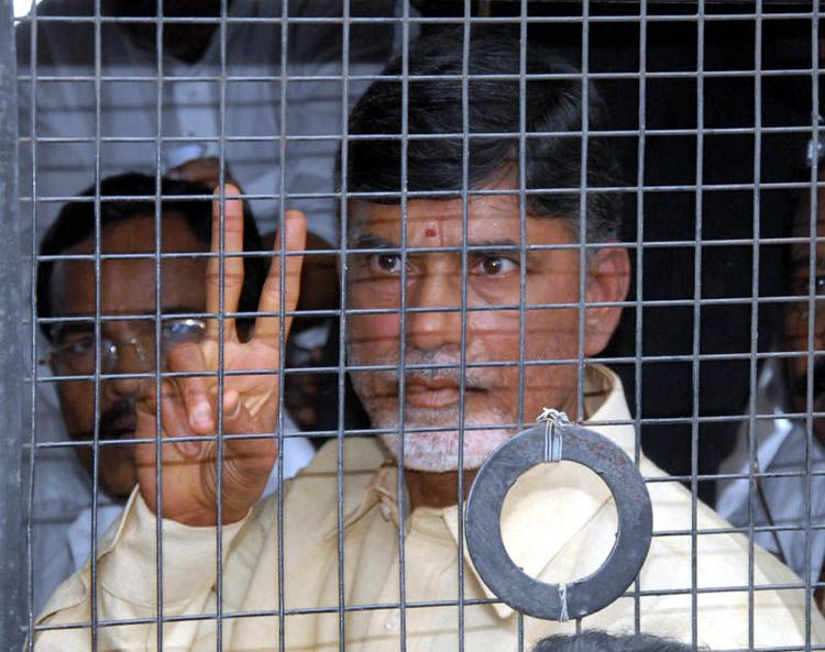 Telugu Desam Party president N Chandrababu Naidu protests at Rasoolpura crossroads after not getting an appointment with Prime Minister Manmohan Singh to submit a memorandum on various issues facing the people of the state. INN Photos