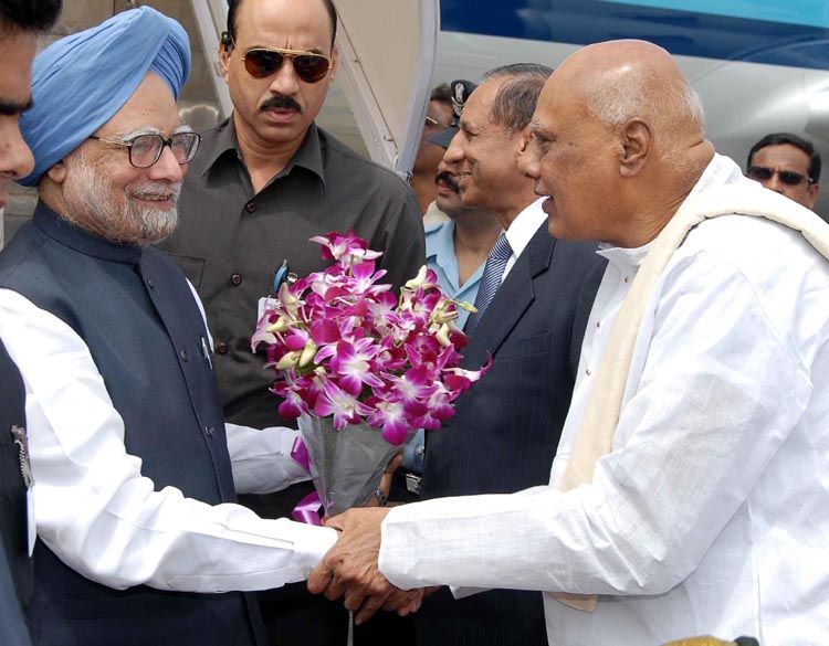 Dr.K.Rosaiah, Honble Chief Minister is seen receiving Dr. Man Mohan Singh, Honble Prime Minister of India at Begumpet Airport, Hyderabad
