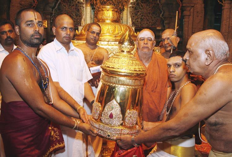 The pontiff of Kanchi Kamakoti Mutt Sri Jayendra Saraswati has donated a diamond studded gold keeratam to Lord Venkateswara. The Ornament costing Rs. 2.5 crore weighing 14.5 kgs Similarly Dr Pratap C Reddy, chairman of Apollo Hospitals has also donated a golden Nagabharam to Lord Venkateswara , The ornament weighing 4.039 kgs and cost Rs.72 lakhs . Both the ornaments were handed over to the JEO, Tirumala, Sri K Bhaskar this evening at the Srivari Temple.