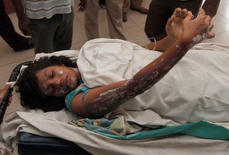 Two persons died including a woman working with Wipro and 16 were injured when a leaking gas cylinder exploded in a working womens hostel at GK Enclave, Indira Nagar, in Gachibowli here on Sunday. Most of the inmates were girl students and software professionals.