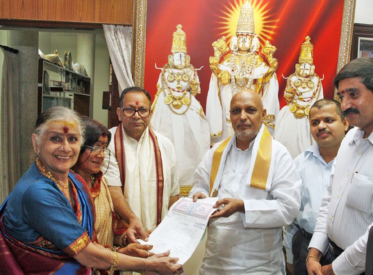 Erstwhile silver screen heart throb Kanchana aka Vasundara Devi and Girija Pandey together has donated a bunglow along with open land worth Rs. 15 crores in the prime area of G.N.Chetty Street in Chennai to Tirumala Tirupati Devasthanams on Monday. They have handed over the registered documents of the land to Sri I.Y.R.Krishna Rao, Executive Officer, TTDs at his bungalow in Tirupati.