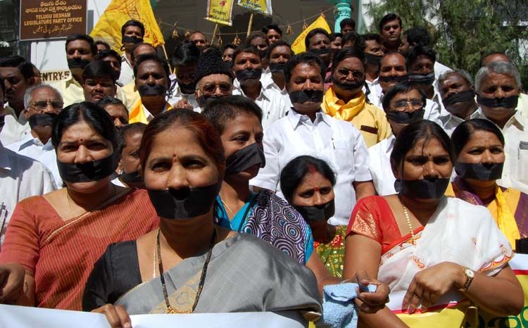 Telugu Desam Party Legislators take out a padayatra from Nampally to the open air auditorium to protest against the proposed renaming of the Lalitha Kala Thoranam at Nampally in Hyderabad on Thursday. INN Photos