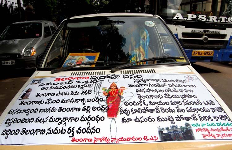 Advocates protest against the AP Formation Day celebrations at the AP High Court in Hyderabad on Monday. INN Photos