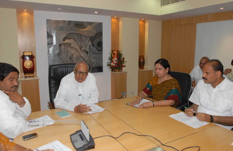 Chief Minister K.Rosiah reviewing rescue and relief measures in place with his ministerial colleauges and district collectors of coastal Andhra Pradesh in view of impending super cyclone likely to hit ap coast on Wednesday at his office in secretariat.