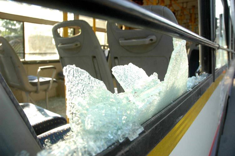 Buses vandalised by students of OU Campus protesting the arrest of aspirants to Sub-Inspectors posts in Hyderabad on Monday. INN Photos
