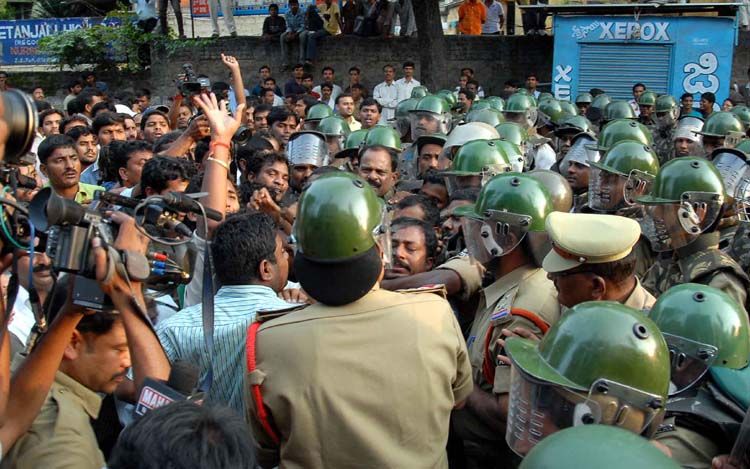 Protest by students at OU demanding cancellation of recruitment test for police Sub-Inspectors. OU students burnt the effigy of MP Kavuri Sambasivarao for his alleged remarks against tribals. Police resort to caning and later arrest the protesters when they tried took out a rally on Tuesday. INN Photos