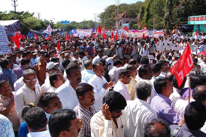 Joint Action Committee of Employees, Pensioners, Teachers, Workers (Representatives of all NGO’s Organizations) participate in a massive rally at Indira Park in Hyderabad on Tuesday. INN Photos