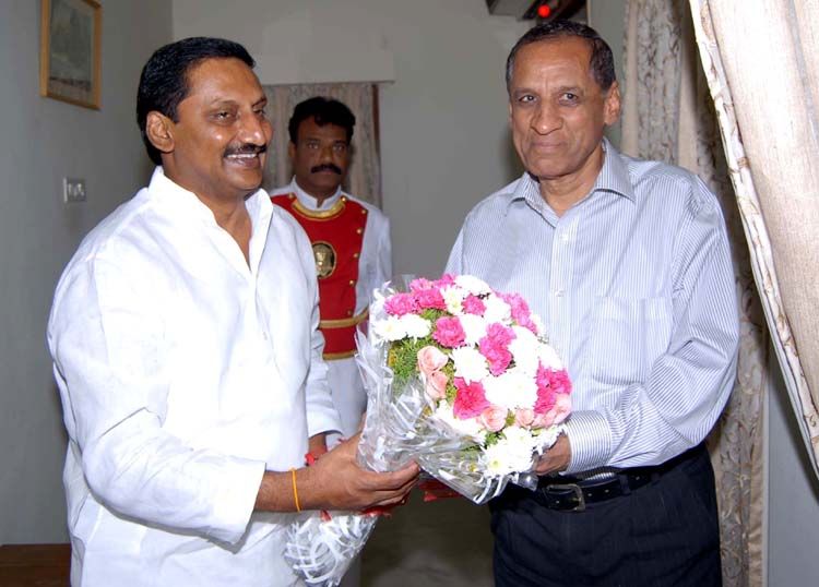 Chief Minister N Kiran Kumar Reddy calls on Governor ESL Narsimhan at the Raj Bhavan in Hyderabad on Friday. INN Photos