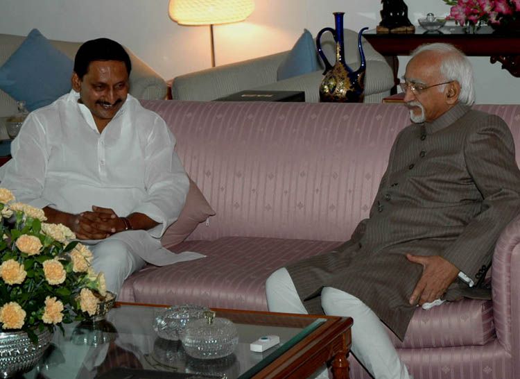Chief Minister N Kiran Kumar Reddy calls on Vice-President Mohammad Hamid Ansari in New Delhi on Saturday. INN Photos