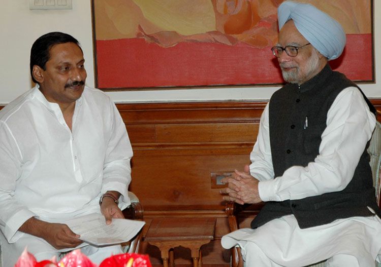 Chief Minister N Kiran Kumar Reddy calls on Prime Minister Manmohan Singh in New Delhi on Saturday. INN Photos