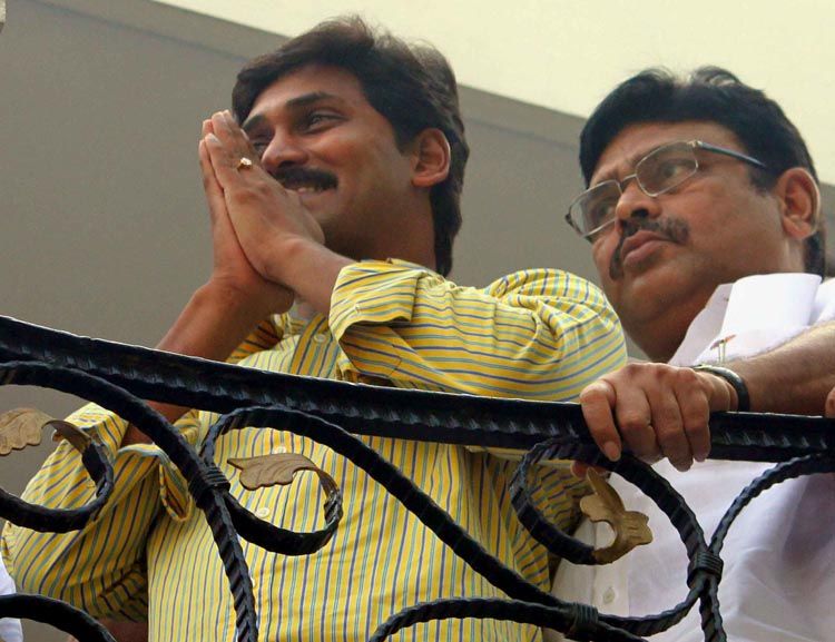 Kadapa MP YS Jaganmohan Reddy greets his supporters after resigning from the Congress party outside his residence at Banjara Hills in Hyderabad on Monday. INN Photos